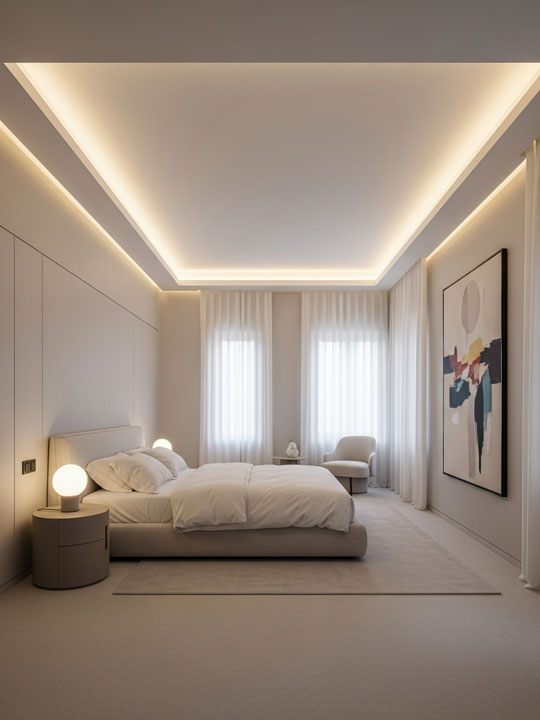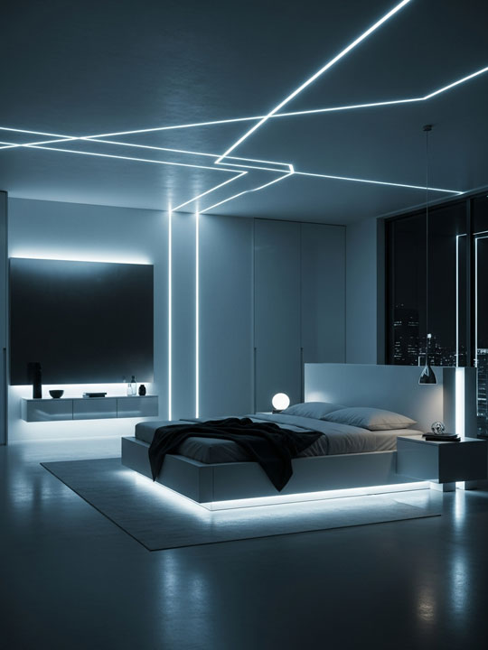 When illuminated, the channel itself seems to vanish, leaving only a pure, radiant glow. This high-tech, minimalist option is perfect for emphasizing clean architectural lines and bringing a futuristic ambiance to your bedroom.