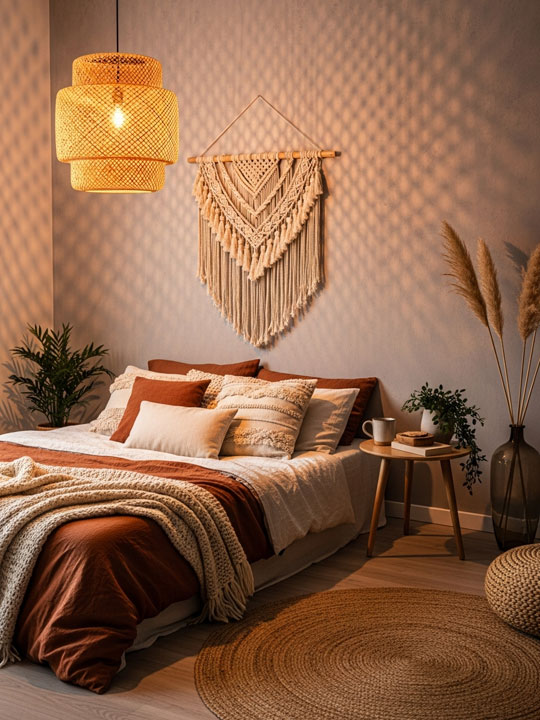 This style is ideal for cozy, bohemian, or coastal-inspired bedrooms. It softens the sharper edges of modern décor and adds a handcrafted touch of charm. This choice proves that modern design can feel inviting, warm, and wonderfully grounded.