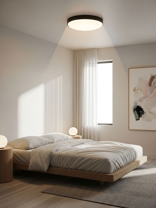 For bedrooms with lower ceilings or a minimalist look, a sleek flushmount is a perfect fit. These fixtures sit close to the ceiling, offering a clean, unobtrusive silhouette without compromising style.