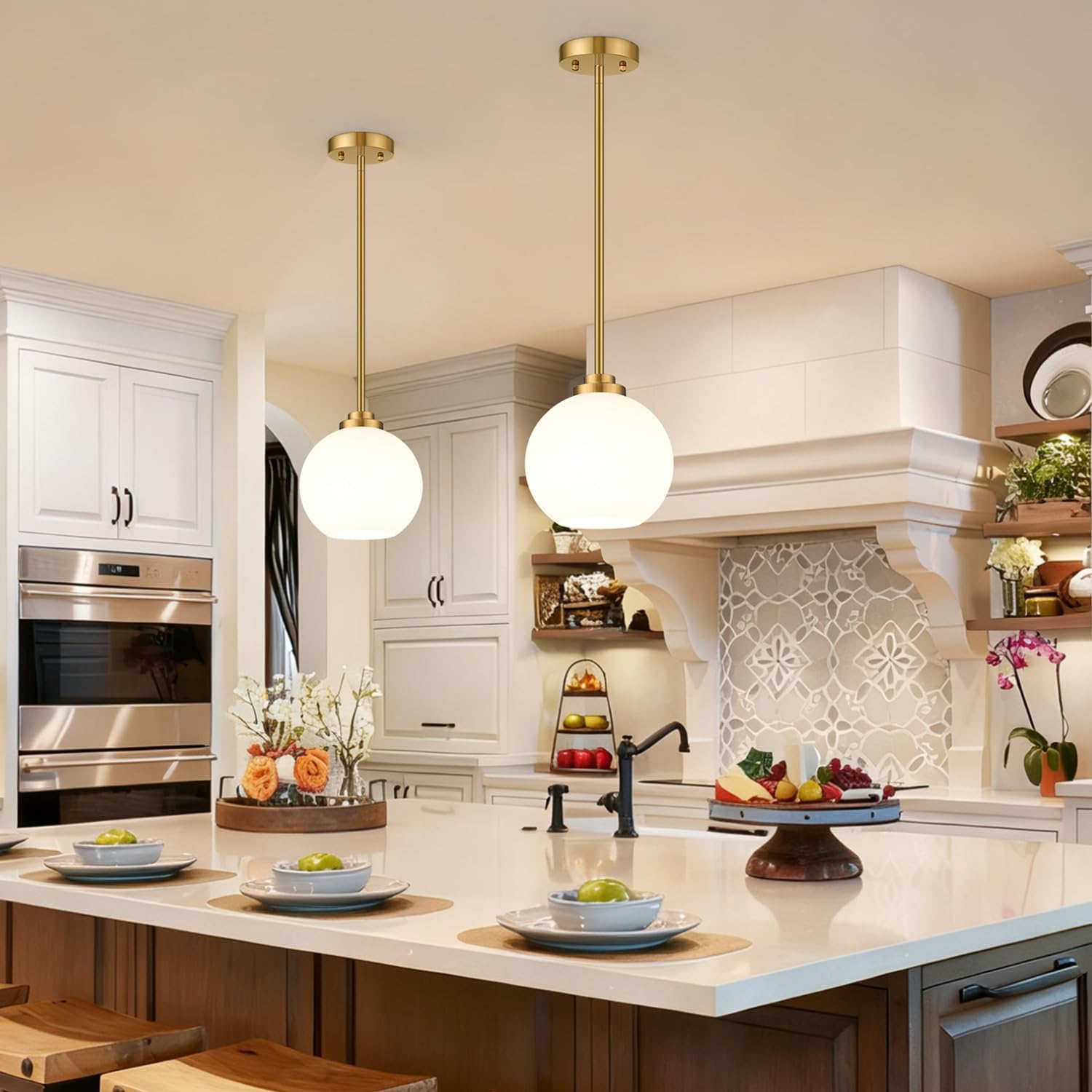 The MQMQA Gold Globe Pendant Lights bring a classic mid-century feel to modern homes. The combination of brushed gold metal and milky white glass delivers a soft, welcoming glow that works beautifully in kitchens and dining areas. The globe shape feels balanced and timeless, making it easy to pair with a wide range of décor styles.