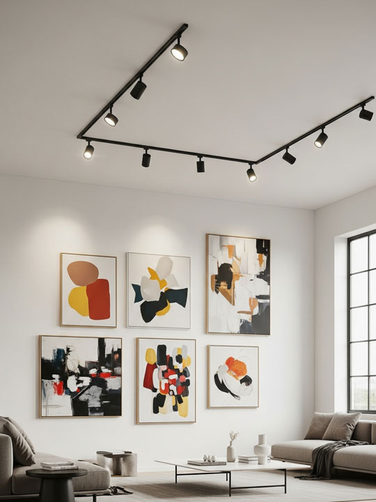 Sleek and modern, track lighting works beautifully in contemporary interiors and open layouts. To balance its clean lines with warmth, pair it with soft white or warm LED bulbs for a welcoming glow that still feels sophisticated.